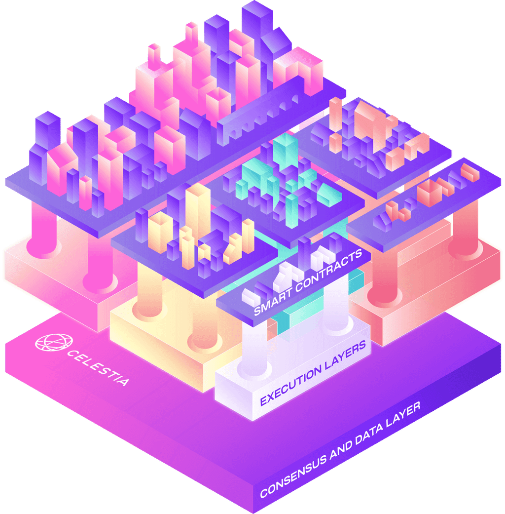 Celestia is a pluggable consensus and data availability layer, to enable anyone to quickly deploy a decentralized blockchain without the overhead of bootstrapping a new consensus network.